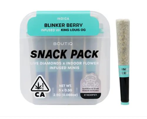 Boutiq Snackpack 5 pack infused Prerolls - Blinker Berry XKing Louis OG was found with another offer. Check them out!