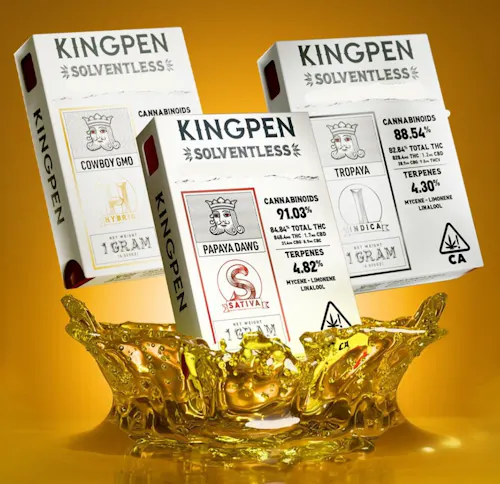 Since 2014 Kingpen set the standard for cannabis vapes when we launched California's first premium, high-potency vape cartridges. Built on award-winning extraction and unwavering quality, Kingpen has evolved into a full family of premium brands: Kingpen, Kingroll, and Kingchews. Every product in the Kingpen Family is crafted at our state-of-the-art facility, ensuring complete control from flower to finish. What started with ultra-refined distillate vapes has expanded into solventless rosin, live resin concentrates, high-potency infused pre-rolls, and modern edibles designed for today’s California consumer. Pure. Potent. Proven. The crown remains the same. Welcome to our Kingdom.