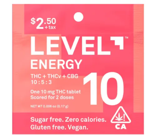 Tired of sugary gummies and messy edibles that leave you feeling sluggish? LEVEL 10 Energy tablets are here to revitalize your day. Each tablet combines the power of 10 mg delta-9 THC, 5 mg of THCv, and 3 mg of CBG in a precisely formulated blend designed to deliver clean, focused energy and help you conquer your to-do list. These highly effective, long-lasting tablets are sugar-free, gluten-free, vegan, and contain zero calories. Plus, they're scored for easy splitting, so you can dial in your perfect dose every time. Simply swallow with liquid.