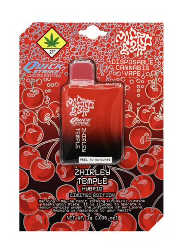 Quickstrike is a brand idea applied to the limited edition THC vape release flavor of Zhirley Temple, available only for a short period of time. This unique flavor features a blend of sweet and tangy lemon-lime soda, mixed with hints of grenadine and maraschino cherry, delivering a distinct and refreshing taste that will transport you to your favorite soda fountain. Experience the Quickstrike difference with this limited edition flavor of Shirley Temple.