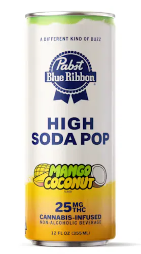 Pabst Blue Ribbon High Soda Pop just got a whole lot tastier. Introducing PBR Mango Coconut. Each can is infused with 25 mg of THC and made with fruit juice concentrates for bold, refreshing flavor. These non-alcoholic cannabis sodas are extra sessionable and deliver a smooth, consistent buzz. Available now at your local dispensary.
