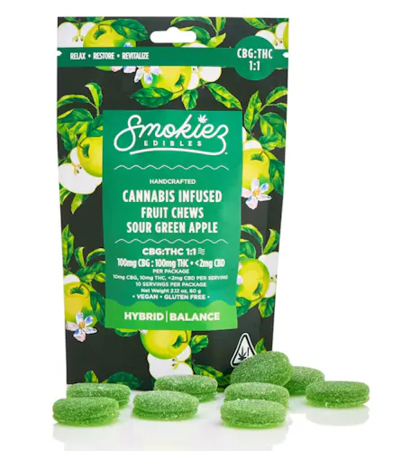 NEW! Smokiez™ Calming Sour Green Apple CBG:THC 1:1 Fruit Chews are NOT YOUR AVERAGE FRUIT CHEWS™ ;)